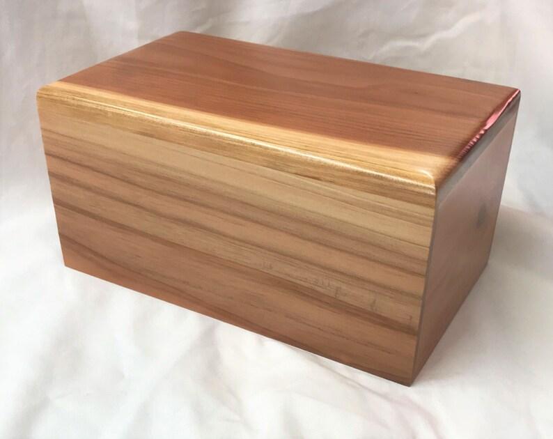 Made from high-quality solid redwood, this urn is precision-cut and assembled by hand in a one-man shop. After the assembly process, the urn goes through a finishing process that includes four coats of clear polyurethane. The urn is then polished to a glossy finish, ensuring that it will last for many years to come.